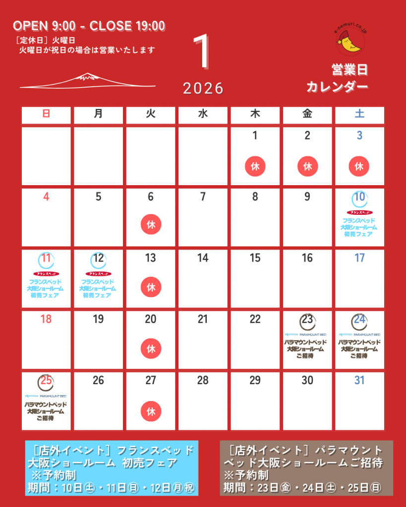 📅2026年1月の営業スケジュールをお知らせいたします📅